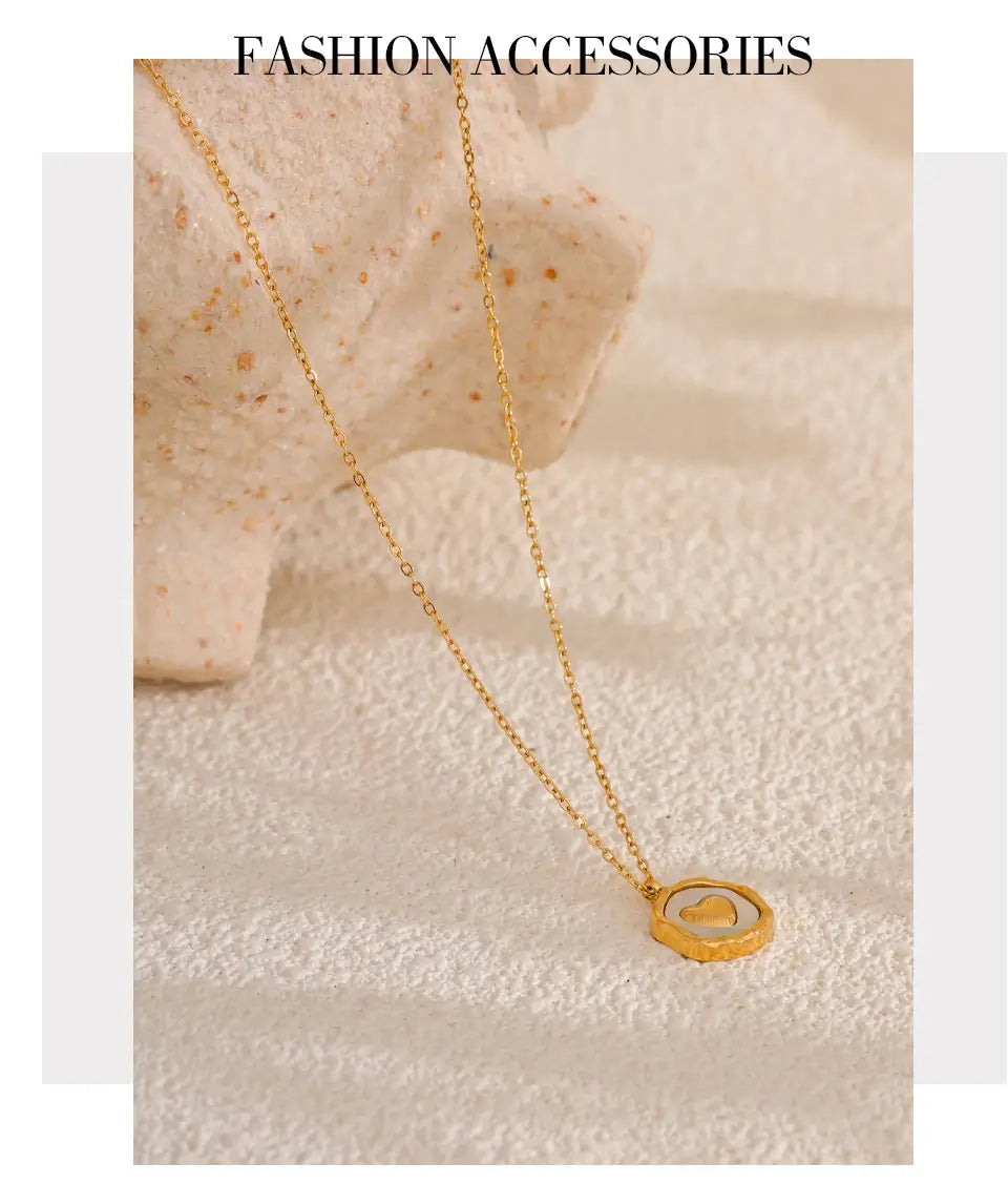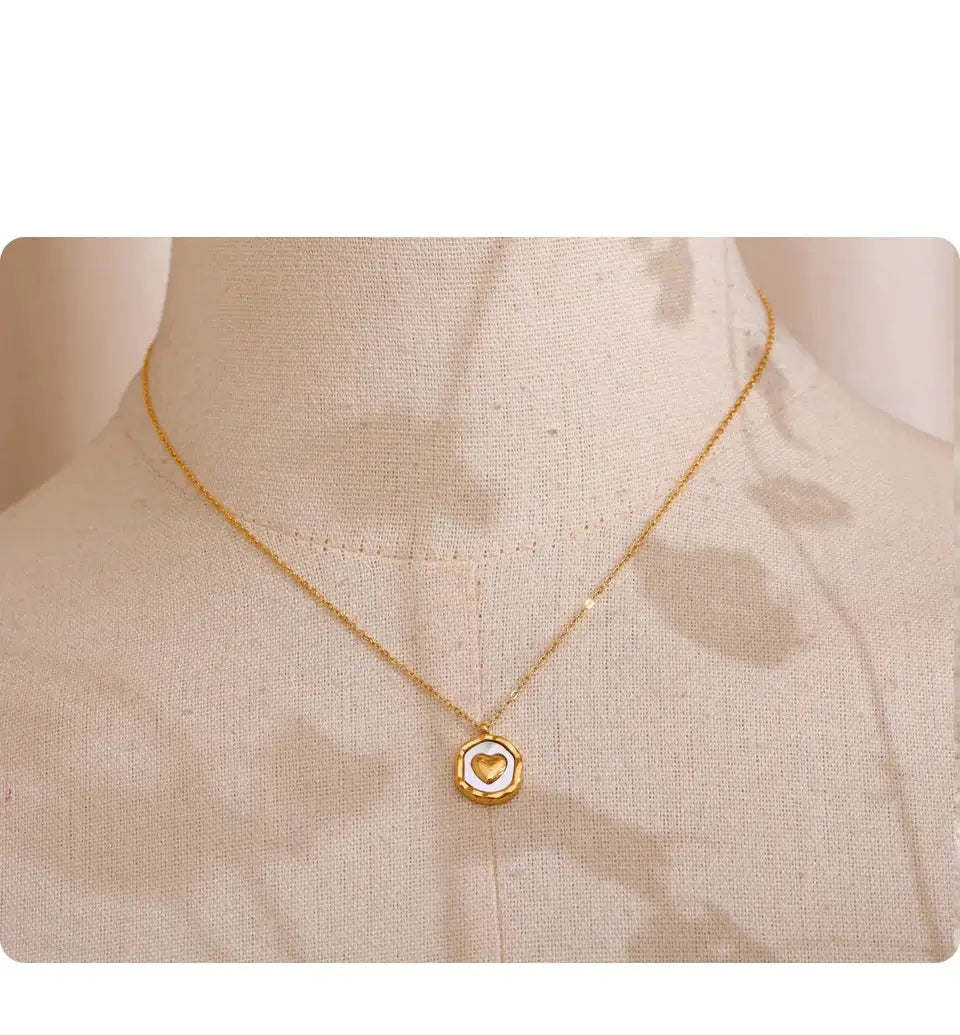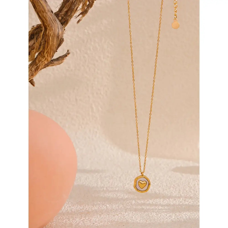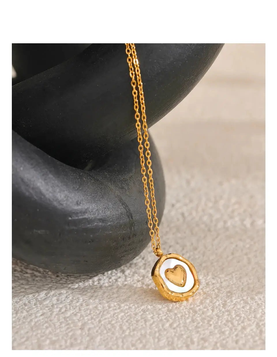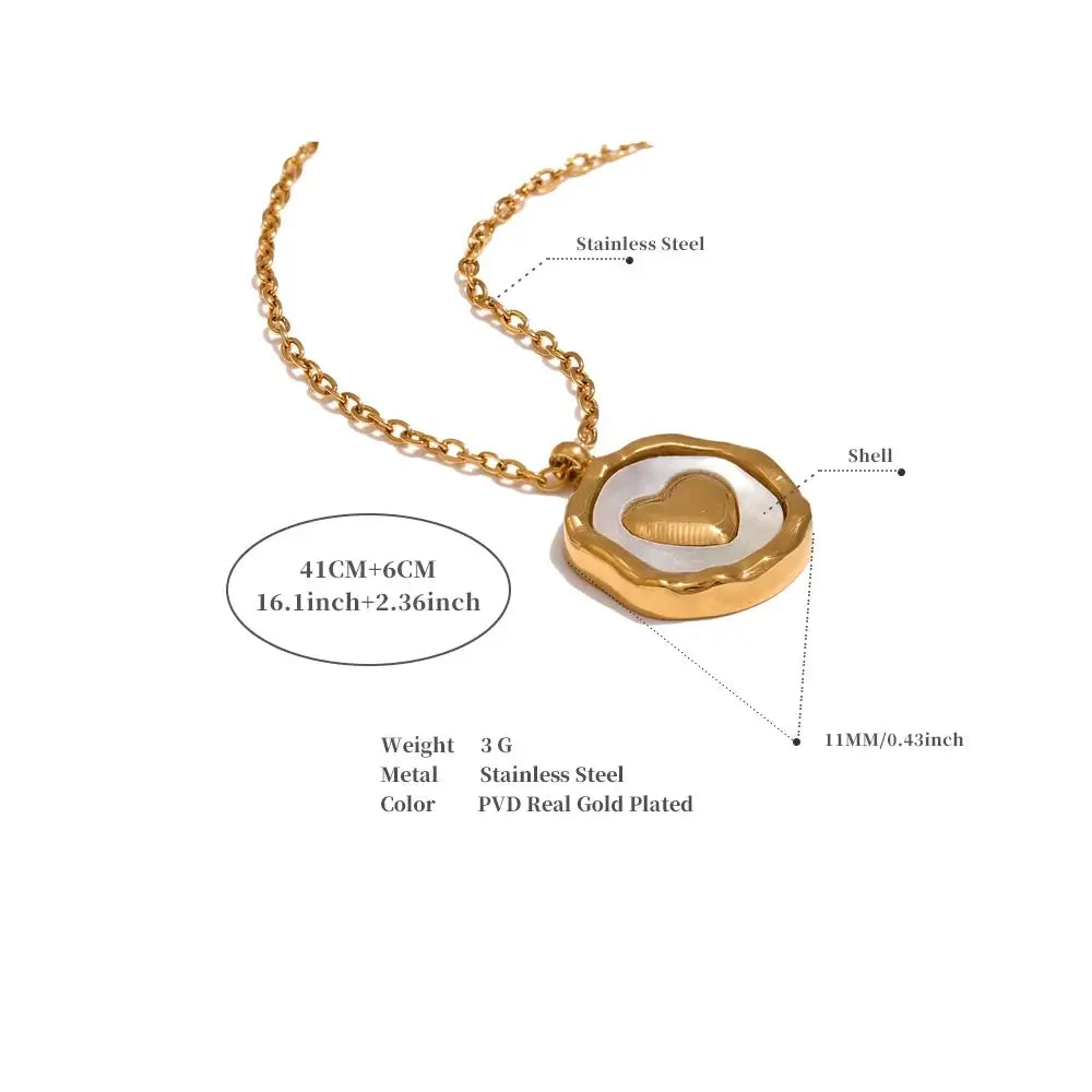 Bellartini 18k Gold Sweet Irregular Circle Shell Heart Pendant Necklace WP Venice