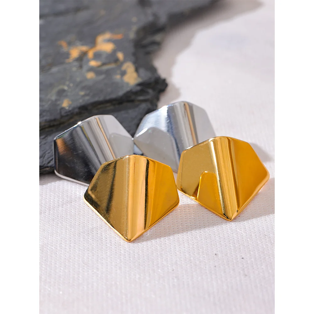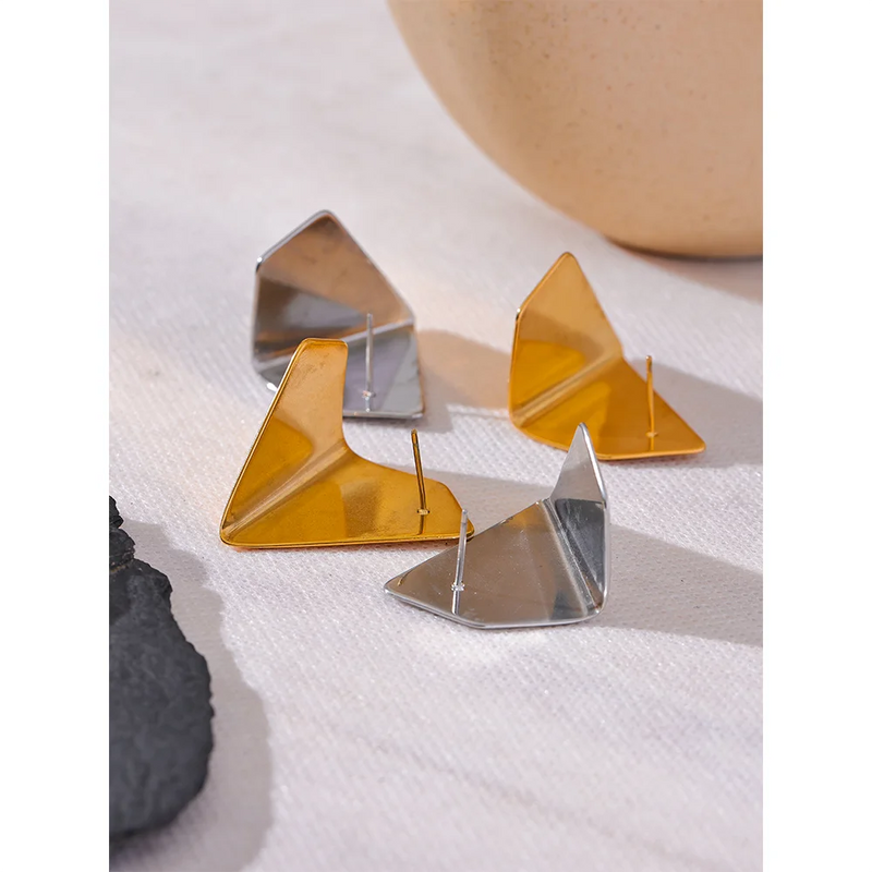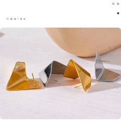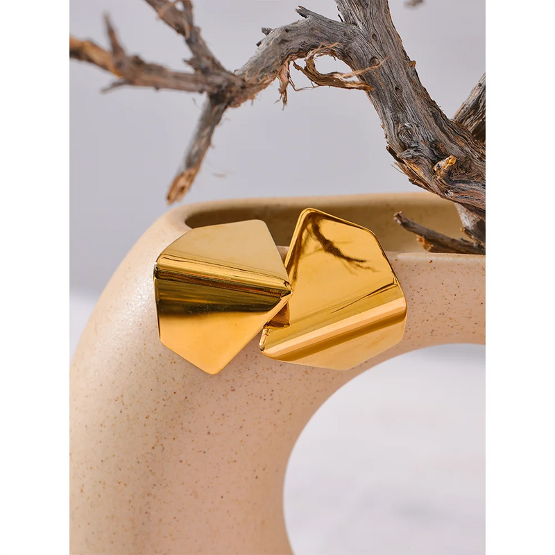 Bellartini Verona Gold Geometric Unusual Stud Earrings Minimalist Texture WP