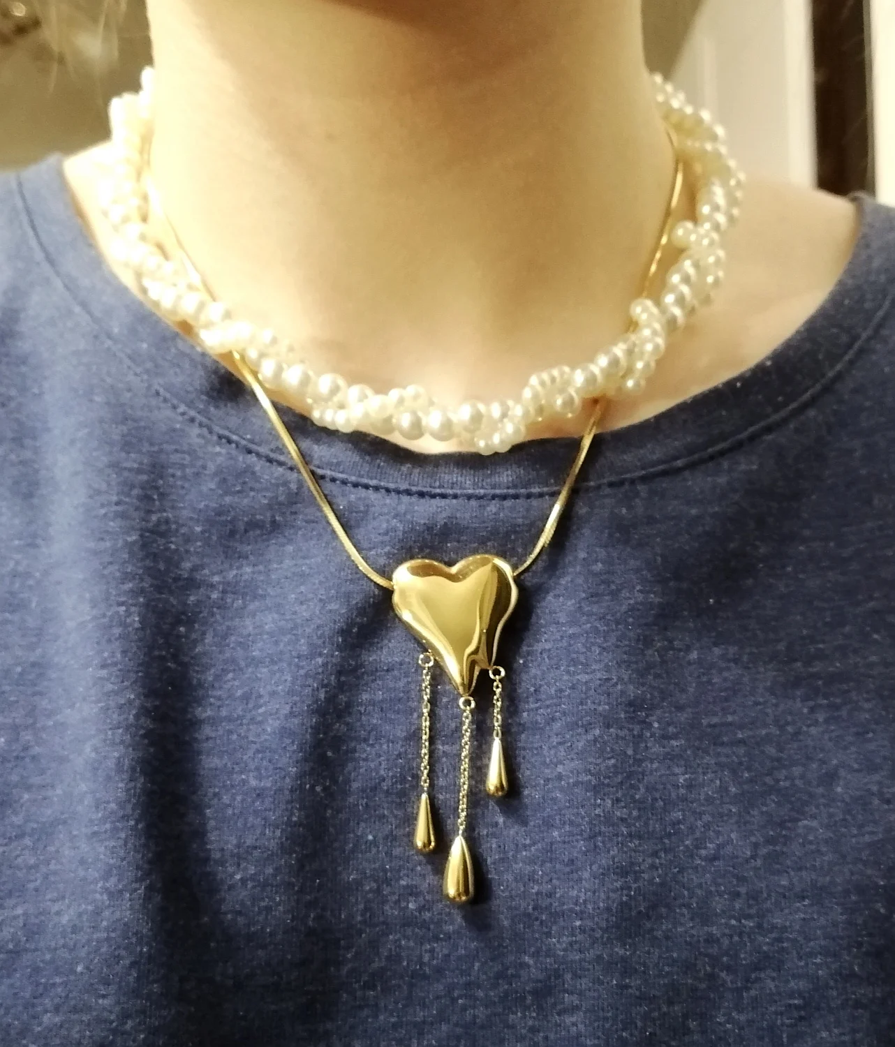 Bellartini Gold Unique Heart Water Drop Necklace WP Venice