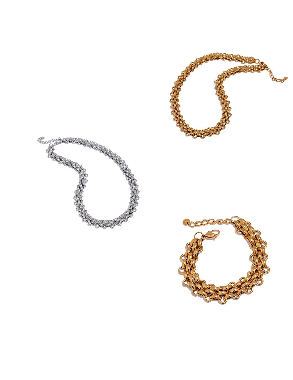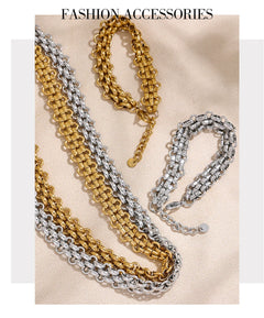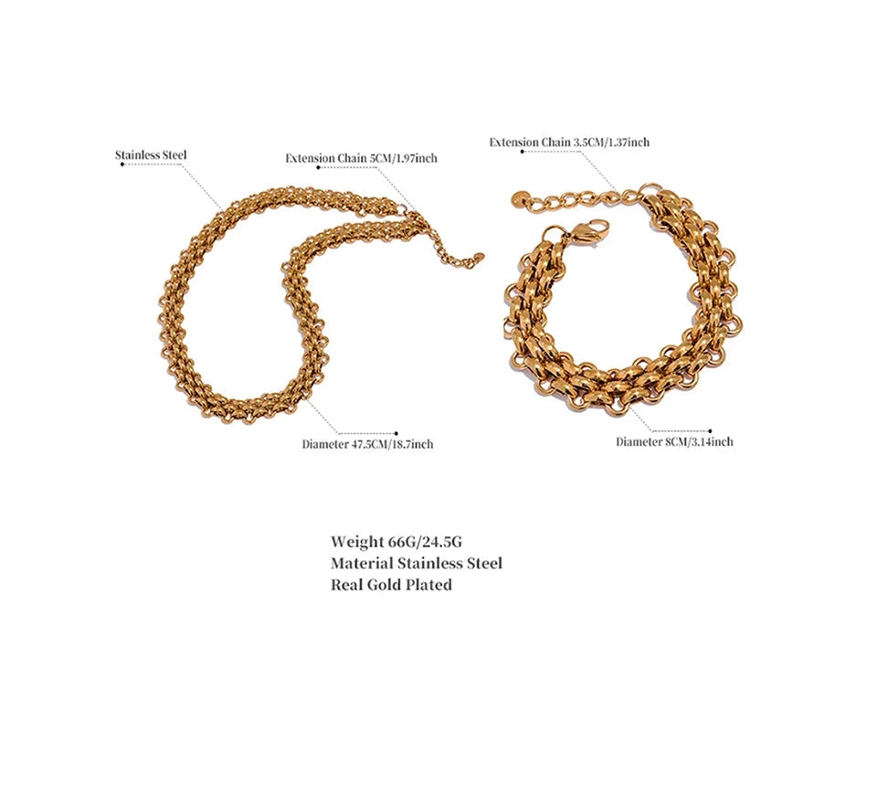 Bellartini 18k Gold Plated Cuban Chain Necklace Bracelet Set WP Venice