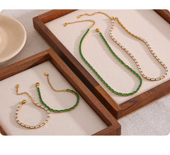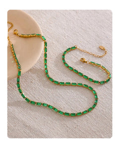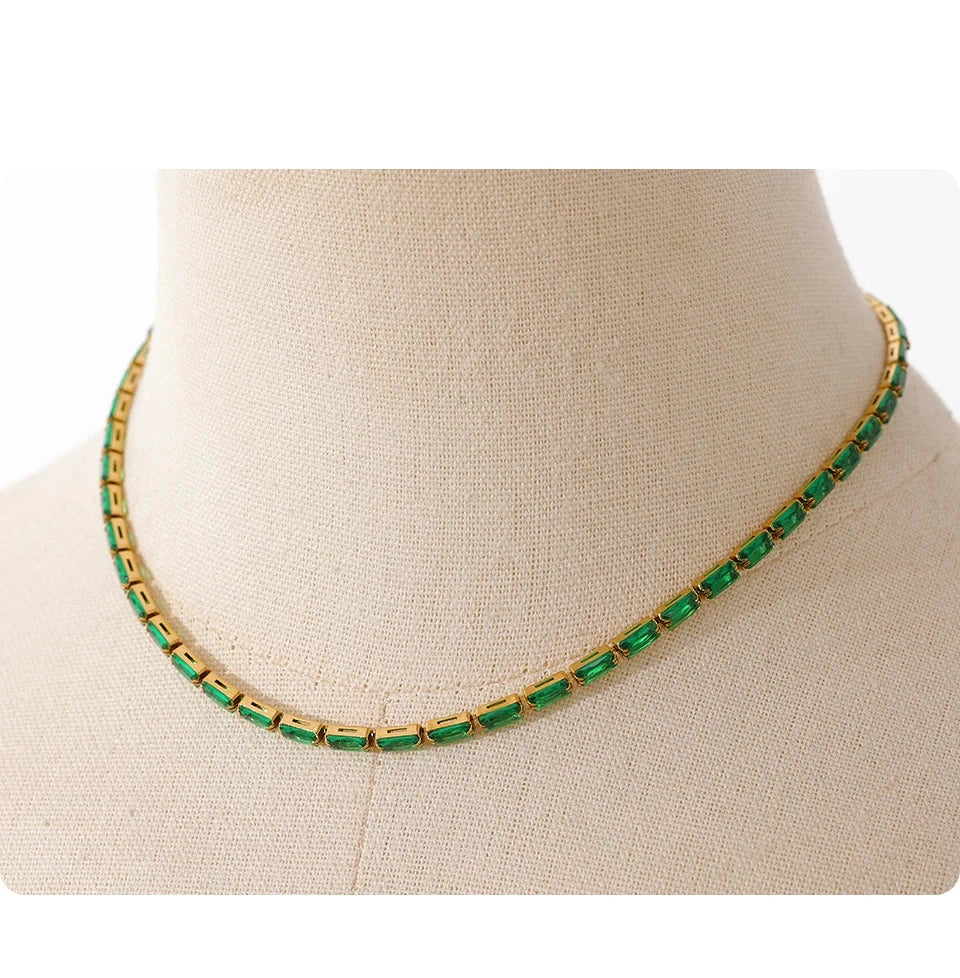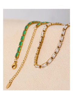 Bellartini Gold Fashion White Green Cubic Zirconia Necklace WP Venice