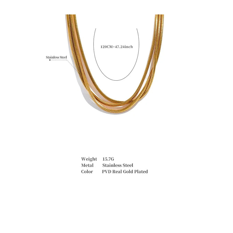 Bellartini 18k Gold Layered Adjustable Overlay Long Chain Necklace WP Venice